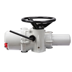 电动多回转执行机构是常见的执行机构类型之一。用单、三相电机使齿轮或蜗轮驱动,然后驱动阀杆螺母。阀杆螺母移动阀杆以打开或关闭阀门。多回转电动执行机构能快速驱动大型阀门。为防止阀门损坏,安装在阀门行程末端的限位开关将切断电机电源。同时,当超过安转矩时,转矩传感装置将切断电机电源。位置开关用于指示阀门的开关状态。配有离合装置的手轮机构,在断电时可以手动操作阀门